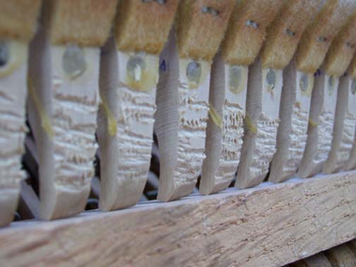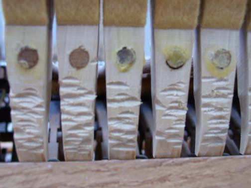 OK all you custom hammer hangers, you've got nothin' on these babies!! I took this action in for rebuild, the previous "job" (can you call it that) left a bit to be desired. I swear, it looks like it had to take four times as long to "checker" these hammers so desperately wrong than to just do it right. Nice glue collar though, eh? ;-] William R. Monroe -------------- next part -------------- A non-text attachment was scrubbed... Name: bad hammers 3.jpg Type: image/jpeg Size: 30041 bytes Desc: not available Url : https://www.moypiano.com/ptg/pianotech.php/attachments/20080110/b50263ff/attachment-0003.jpg -------------- next part -------------- A non-text attachment was scrubbed... Name: bad hammers 1.jpg Type: image/jpeg Size: 31510 bytes Desc: not available Url : https://www.moypiano.com/ptg/pianotech.php/attachments/20080110/b50263ff/attachment-0004.jpg -------------- next part -------------- A non-text attachment was scrubbed... Name: bad hammers 2.jpg Type: image/jpeg Size: 27639 bytes Desc: not available Url : https://www.moypiano.com/ptg/pianotech.php/attachments/20080110/b50263ff/attachment-0005.jpg