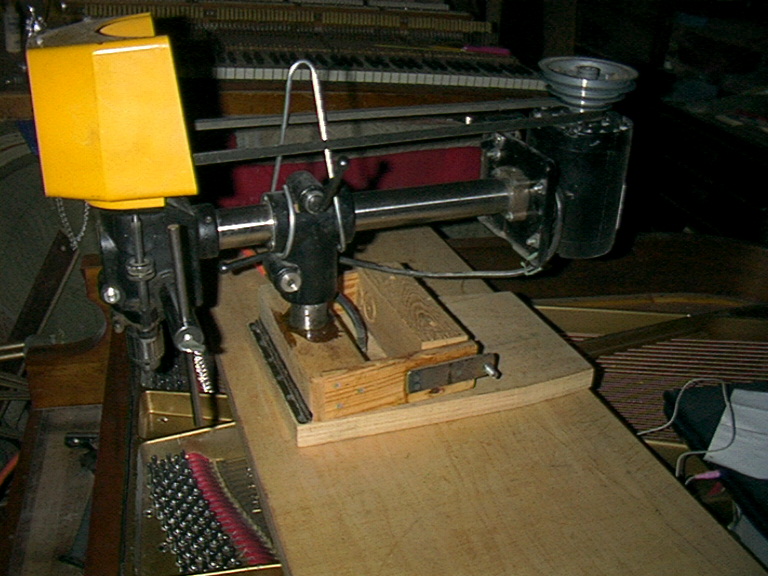 > Ron, > is it possible to send us a picture of your drilling set up? This is it. A radial drill press on a compressed air floated platform. Squeeze the air valve, and the the thing moves with very little effort to position the drill. Release the valve, and it sits solidly on the plank for drilling. Like most of my jigs and shop made tooling, it's ugly but effective. Ron N -------------- next part -------------- A non-text attachment was scrubbed... Name: drill1.jpg Type: image/jpeg Size: 189064 bytes Desc: not available Url : https://www.moypiano.com/ptg/pianotech.php/attachments/20070526/94c8c739/attachment-0002.jpg -------------- next part -------------- A non-text attachment was scrubbed... Name: drill4.jpg Type: image/jpeg Size: 191141 bytes Desc: not available Url : https://www.moypiano.com/ptg/pianotech.php/attachments/20070526/94c8c739/attachment-0003.jpg