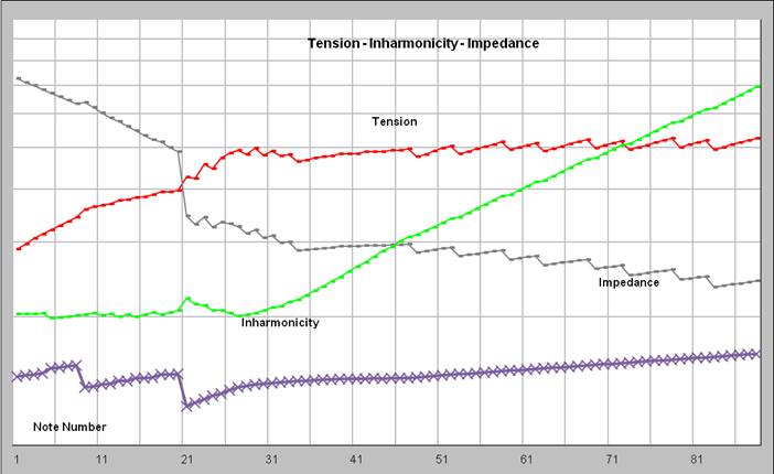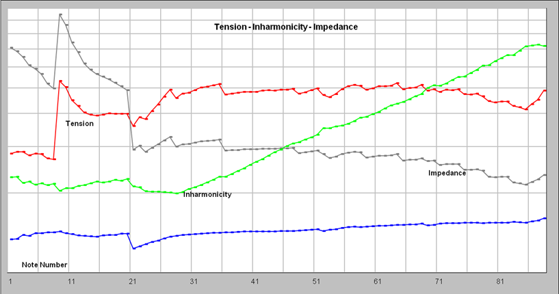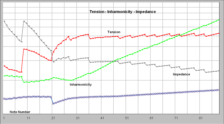 The attached graphics make the archives just fine, thank you... https://www.moypiano.com/ptg/pianotech.php/attachments/20121214/4aa3a09e/attachment-0003.png https://www.moypiano.com/ptg/pianotech.php/attachments/20121214/4aa3a09e/attachment-0004.png https://www.moypiano.com/ptg/pianotech.php/attachments/20121214/4aa3a09e/attachment-0005.png Clear evidence that 20(?SWAG)-yr-old listserve software can do it. Why can't HL? Paul Bruesch Stillwater, MN On Fri, Dec 14, 2012 at 2:07 PM, David Love <davidlovepianos at comcast.net>wrote: > Yes, Dale is correct. Different string makers have different solutions > and ideas. **** > > ** ** > > Just to pursue this a bit further, here’s a graphic illustration of what > different string scalers might come up with. My general procedure on all > pianos is to calculate out the string scale and at least look at it. I > have my own spread sheet for this. On this particular Steinway B it was > clear that the upper treble dropped off considerably owing to a relatively > short speaking length at note 88. On both of these a recapped bridge > allowed me to layout the top treble section a bit differently with a > speaking length at 88 of 52 rather than 48 mm that was there on the > original and a log scale in that section. I feel quite comfortable in the > plain wire section however in the bass I defer to others with more > experience than I have yet you can see there are differences and one does > have to make an esthetic judgment at some point and go with what sounds > best no matter how it may look on paper.**** > > ** ** > > The treatment at the bottom of the tenor bridge varied with a few minor > tweaks of wire, no changes to wrapped strings there. **** > > ** ** > > The original scaling (#1) had a very pronounced tonal jump at note 20. > You can see that in the graph. The tonal transition is at best a problem > there but this original (early 20th century) Steinway scaling enhanced > that difference even more. The more recent scaling that Steinway uses is > slightly different with lower tension at note 20, lower impedance and not > quite such a loud bark. **** > > ** ** > > The bass scaling was two different proposals by different people (#2 and > #3). I put #3 on originally and then eventually took it off because I > didn’t like it settling for #2. **** > > ** ** > > Just to give an example of how people can view this differently and come > up with different solutions. **** > > ** ** > > The line at the bottom that is unlabeled is the BP%, btw. You’ll need to > be in html to view this and, of course, it won’t reach the archives. **** > > ** ** > > ** ** > > ** ** > > ** ** > > **1. ** Original Steinway B**** > > ** ** > > ** ** > > **** > > ** ** > > ** ** > > ** ** > > **2. ** Steinway B with modified treble layout and bass rescaling*** > * > > ** ** > > ** ** > > **** > > ** ** > > ** ** > > **3. ** Steinway B with modifed treble layout and different bass > scaling**** > > ** ** > > **** > > ** ** > > ** ** > > David Love**** > > www.davidlovepianos.com**** > > ** ** > > *From:* pianotech-bounces at ptg.org [mailto:pianotech-bounces at ptg.org] *On > Behalf Of *Dale Erwin > *Sent:* Friday, December 14, 2012 7:25 AM > *To:* pianotech at ptg.org > *Subject:* Re: [pianotech] GH-1s, etc.**** > > ** ** > > By the way for what its worth, String makers will tell you certain thing > based on there on bias and method of calculating in tensions. IE. For a > while I had a well known string maker make tri-chords for 3 wrapped unison > for the Stwy B break. (on the original bridge) It was an improvement but I > wanted bi-chords but was told that it couldn't be done. **** > > Well turns out I didn't like the tri-chords so much. SO I asked another > maker if they could make the bi-chord and they said sure no problem. SO as > it turns out, for my ear, its a good remedy when not adding a transition > bridge, and less invasive to the original design than lopping off the > bridge. Some folks like the original thing.**** > > I only add 3unisons of bichord and its a much better sounding break than > original....and more musical than the tri-chords. The tri-chords developed > false beats after a while and some broke. ughh how I hate that.**** > > *Dale Erwin R.P.T. > **Erwin's Piano Restoration Inc.** > **Mason & Hamlin/Steinway/U.S. pianos > **www.Erwinspiano.com** > **Phone: 209-577-8397** > * > > **** > -------------- next part -------------- An HTML attachment was scrubbed... URL: <https://www.moypiano.com/ptg/pianotech.php/attachments/20121214/9a990d1c/attachment-0001.htm> -------------- next part -------------- A non-text attachment was scrubbed... Name: not available Type: image/png Size: 65734 bytes Desc: not available URL: <https://www.moypiano.com/ptg/pianotech.php/attachments/20121214/9a990d1c/attachment-0003.png> -------------- next part -------------- A non-text attachment was scrubbed... Name: not available Type: image/png Size: 71490 bytes Desc: not available URL: <https://www.moypiano.com/ptg/pianotech.php/attachments/20121214/9a990d1c/attachment-0004.png> -------------- next part -------------- A non-text attachment was scrubbed... Name: not available Type: image/png Size: 75840 bytes Desc: not available URL: <https://www.moypiano.com/ptg/pianotech.php/attachments/20121214/9a990d1c/attachment-0005.png>